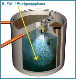 in Reinigungzyklen. Belüftete und unbelüftete Zeiten wechseln